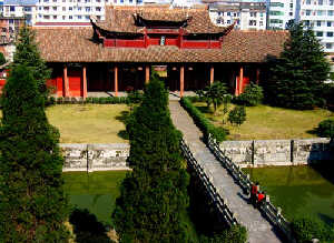 安福孔庙占地10余亩,主要建筑物均以一条南北向的中轴线排列,它利用层迭推进的门阙、津桥、院落丰富空间的变化,借以突出尊崇孔子的主题。大成门与大成殿是孔庙的主体建筑,占地面积3000余平方米。歇山重檐,琉瓦飞甍,展翅欲飞。大成殿高14米,宽25米,采用台梁框架结构,台基拱柱,横梁穿方,8根合抱楠木大柱顶天立地支撑大屋架,木雕奇兽,梁枋彩画,红柱金匾,历代楹联,显得庄重堂皇。殿外回廊54根八角型红石础柱,犹如挺立着54位威武的卫士。其中大成门和大成殿正中的两对红石柱,直径60厘米,通体镂空浮雕缠云滚龙、一鳞一爪,栩栩如生,其神其势,呼之欲出,使大殿更显庄严。 时逢盛世,古建筑焕发生机。上世纪九十年代中期,在有关部门的支持下,海内外安福人捐资修缮孔庙。经过5年多的努力,一座仍然保持明代风格的安福孔庙再现昔日的风采,并利用修缮好的分贤、名宦二祠及两庑的场地,创办了安福县博物馆,系统地介绍安福古县2000多年来的历史和文化。