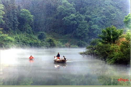 在武功山脚下武功湖湖水出口一公里处,我们登上一条机动木船,伴着节奏均匀的马达轰鸣声,缓缓向下游驰行......正是下午丽日高照、白云悬空的时候,木船在江面上平稳地行进,迎面扑来一阵阵 湿漉漉、凉丝丝的清香甘露,似风又似雾。顿时,一股绵绵不绝的清凉之气透过肌肤直达心房。