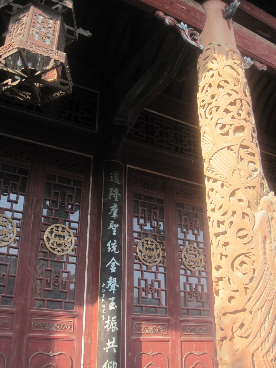 安福孔庙占地10余亩,主要建筑物均以一条南北向的中轴线排列,它利用层迭推进的门阙、津桥、院落丰富空间的变化,借以突出尊崇孔子的主题。大成门与大成殿是孔庙的主体建筑,占地面积3000余平方米。歇山重檐,琉瓦飞甍,展翅欲飞。大成殿高14米,宽25米,采用台梁框架结构,台基拱柱,横梁穿方,8根合抱楠木大柱顶天立地支撑大屋架,木雕奇兽,梁枋彩画,红柱金匾,历代楹联,显得庄重堂皇。殿外回廊54根八角型红石础柱,犹如挺立着54位威武的卫士。其中大成门和大成殿正中的两对红石柱,直径60厘米,通体镂空浮雕缠云滚龙、一鳞一爪,栩栩如生,其神其势,呼之欲出,使大殿更显庄严。 时逢盛世,古建筑焕发生机。上世纪九十年代中期,在有关部门的支持下,海内外安福人捐资修缮孔庙。经过5年多的努力,一座仍然保持明代风格的安福孔庙再现昔日的风采,并利用修缮好的分贤、名宦二祠及两庑的场地,创办了安福县博物馆,系统地介绍安福古县2000多年来的历史和文化。
